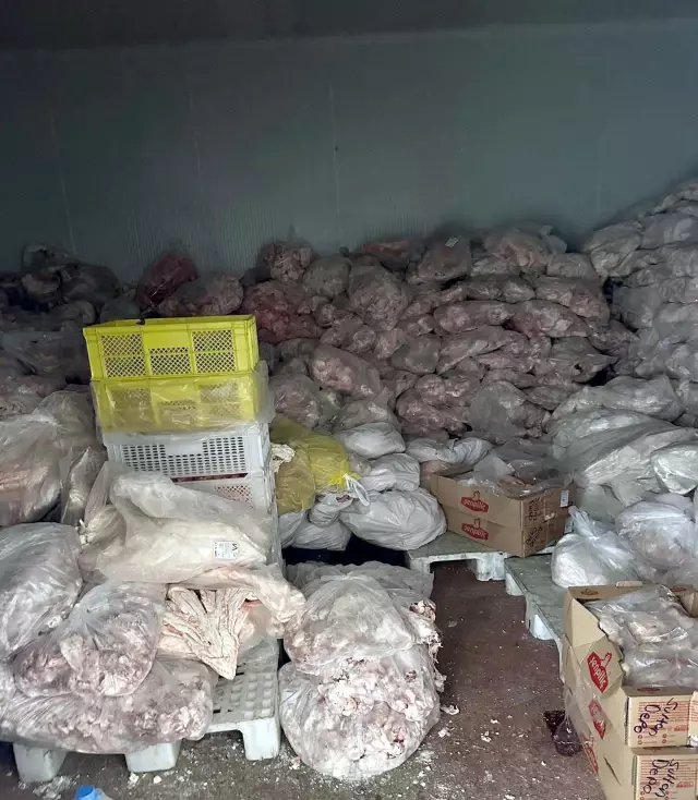 Denetimlerde; soğuk hava deposunda etiketsiz ve ambalajı yırtılmış ürünler, koridorda, gıdaya uygun olmayan sıcaklıkta ve hijyen dışı koşullarda bekletilen iç yağlar, tahta paletler üzerinde hijyen kurallarına aykırı muhafaza, çapraz bulaşma riski taşıyan ortamlarda ürün işleme, kullanılmış et işleme ekipmanları ve boş piliç kutuları tespit etti.